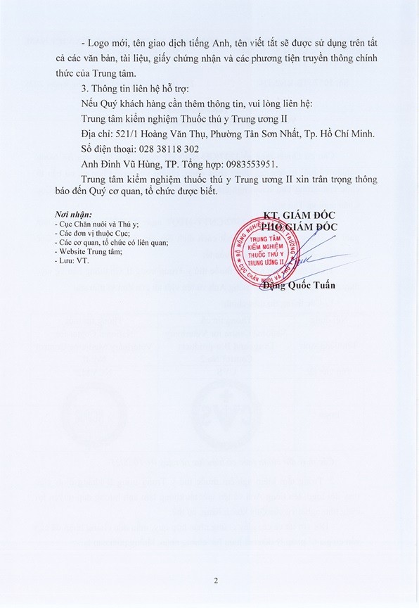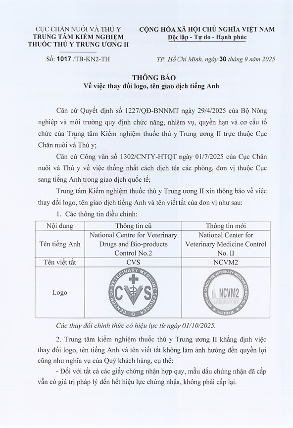 TRUNG TÂM KIỂM NGHIỆM THUỐC THÚ Y TRUNG ƯƠNG II (NCVM2)